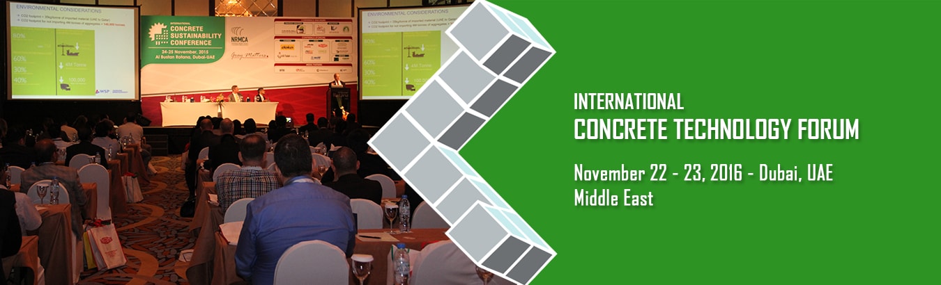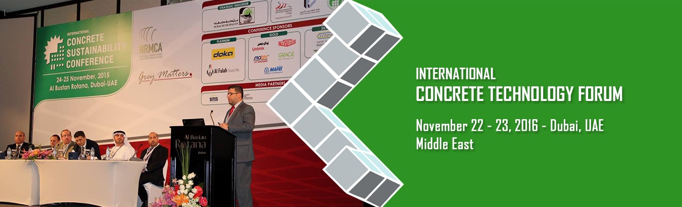 Join Dubai Municipality, National Ready Mixed Concrete Association, Grey Matters and the sponsors for the 2016 International Concrete Technology Forum, November 22-23, 2016, in Dubai. The International Concrete Technology Forum provides learning and networking opportunities on the latest advances, technical knowledge, continuing research, tools and solutions for concrete manufacturing, design and construction. NRMCA hosts technical conferences in North America and other parts of the world each year. The conference provides learning and networking opportunities on the latest advances, technical knowledge, continuing research, tools and solutions for concrete manufacturing and construction.